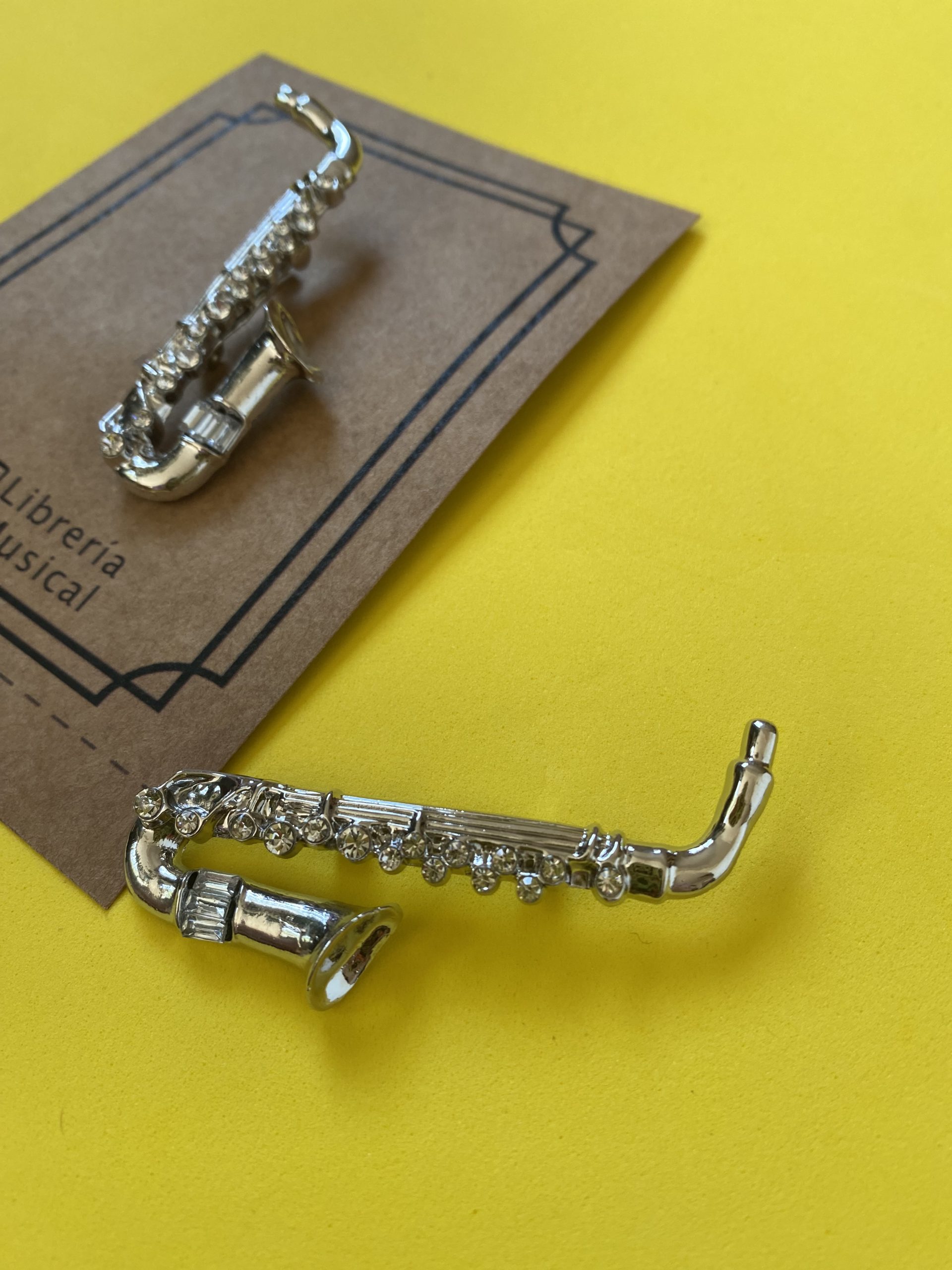 / Prendedor saxofón plateado